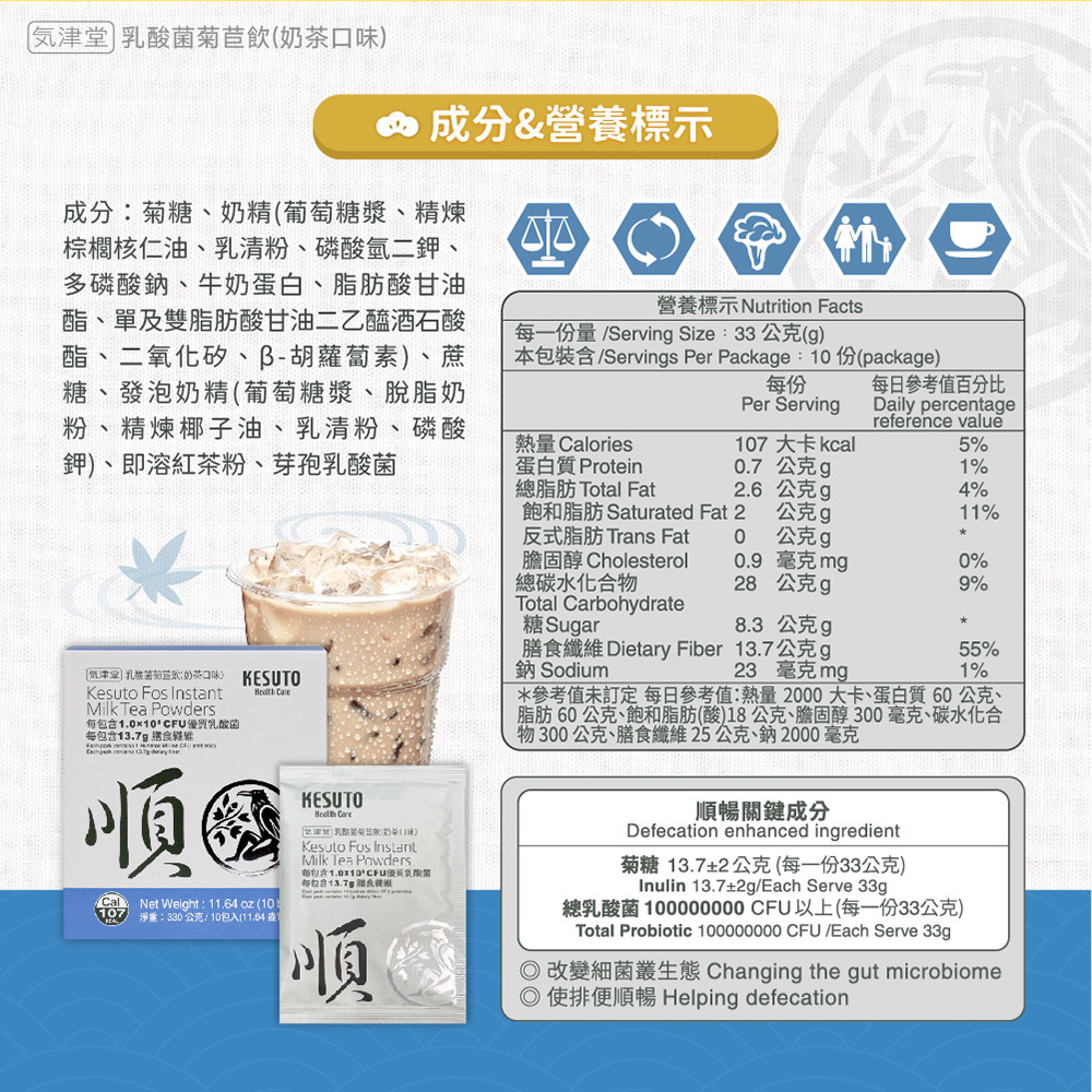 【KESUTO】氣津堂 乳酸菌菊苣飲奶茶口味(10包/盒)廠商直送