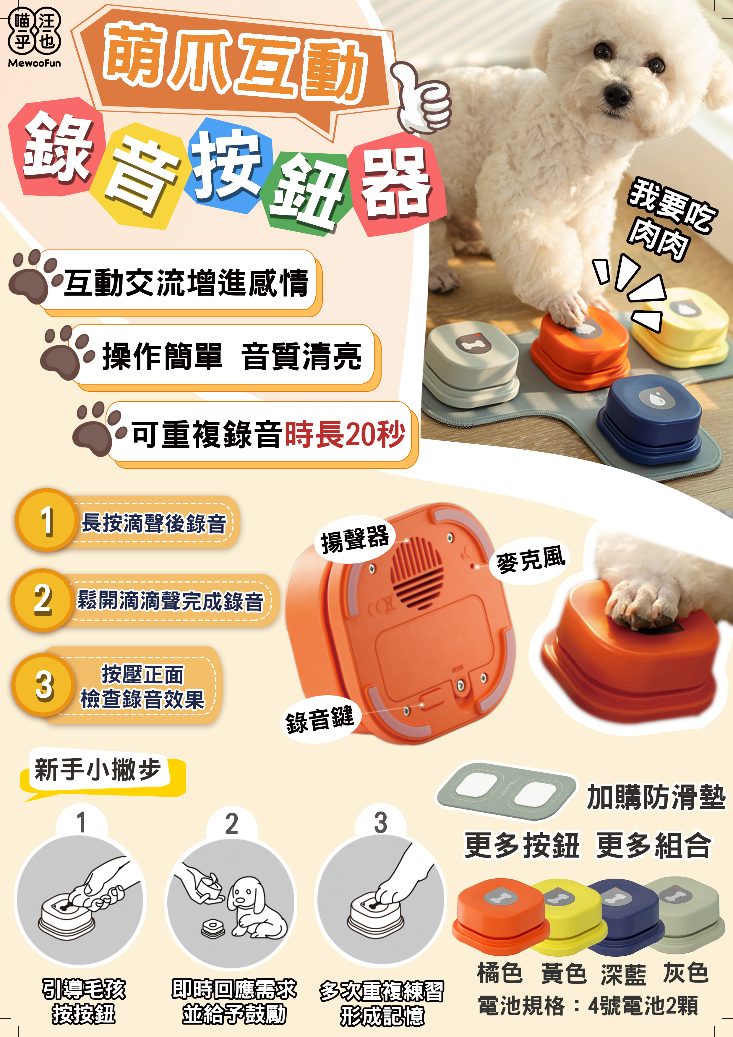 .品名:【喵呼汪也】萌互動錄音按鈕器防滑墊2入/組