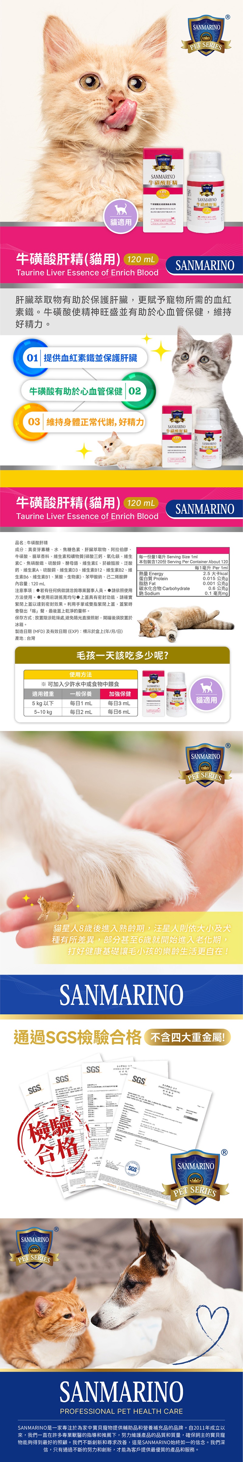 【SANMARINO 聖馬利諾】牛磺酸肝精-貓咪專用(120ml/瓶)X2入組(廠商直送)