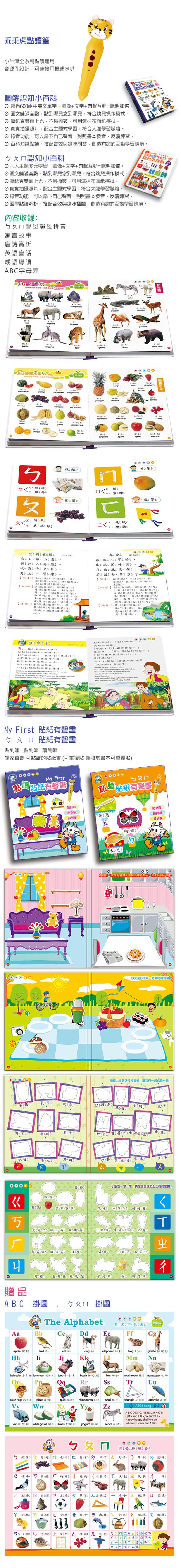 規格:ABC小百科、ABC貼紙書、ABC掛圖、ㄅㄆㄇ小百科、ㄅㄆㄇ貼紙書、ㄅㄆㄇ掛圖、乖乖虎點讀筆