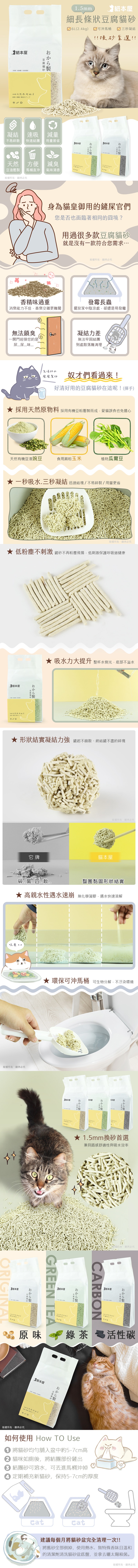 .品名:【貓本屋】細長條狀 豆腐貓砂(6L)-活性碳