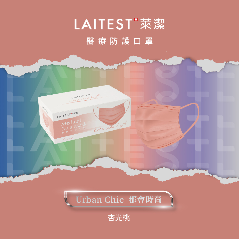 【LAITEST萊潔】都會系列-醫療防護口罩(成人)-杏光桃-30入/盒