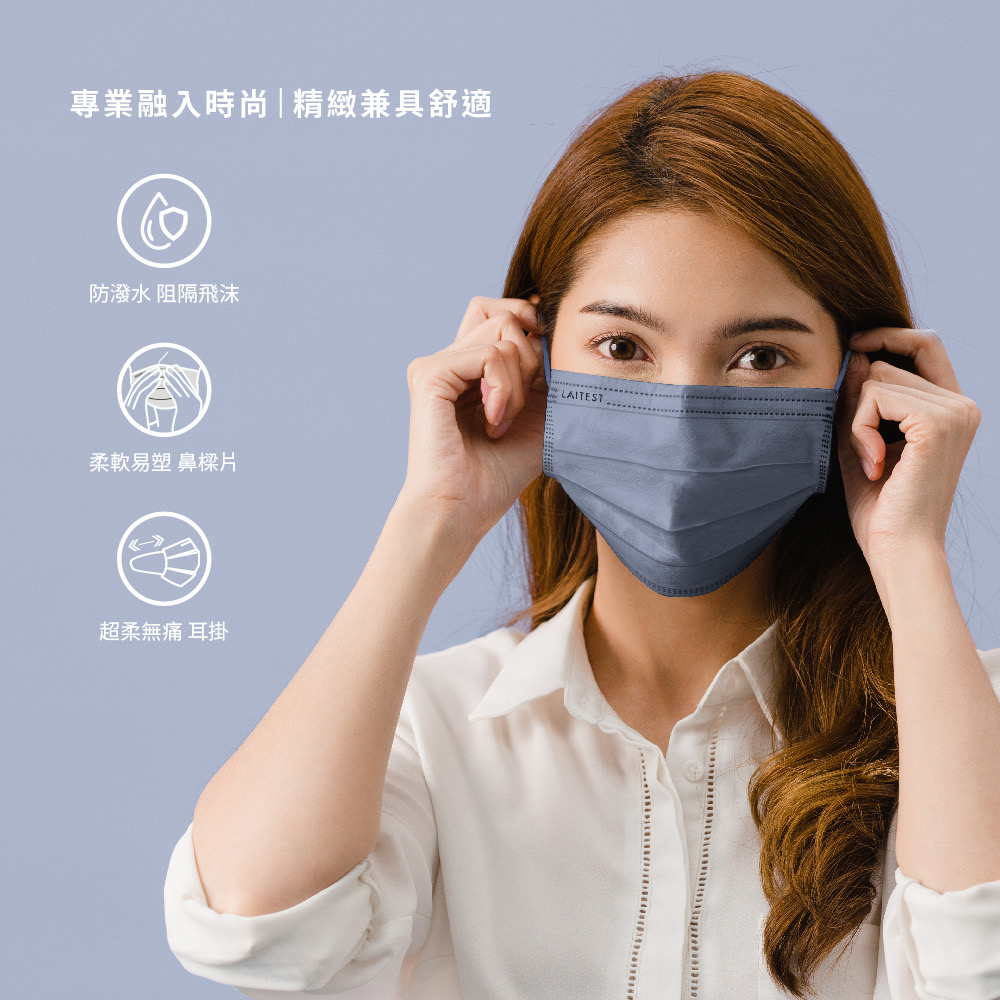 【LAITEST萊潔】都會系列-醫療防護口罩(成人)-浮岩藍-30入/盒