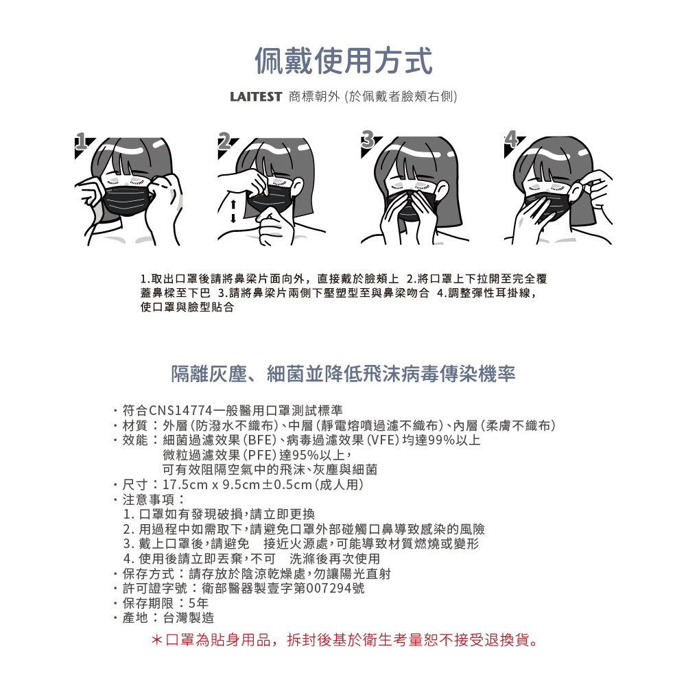 • 口罩如有破損請更換。
