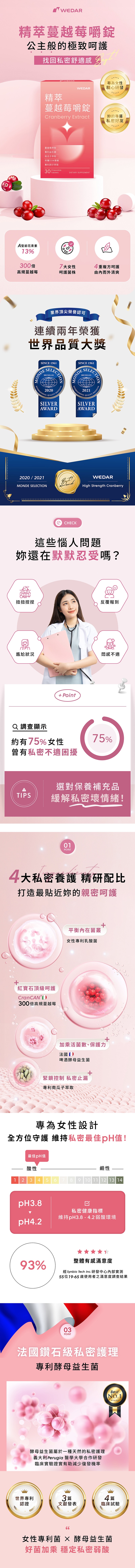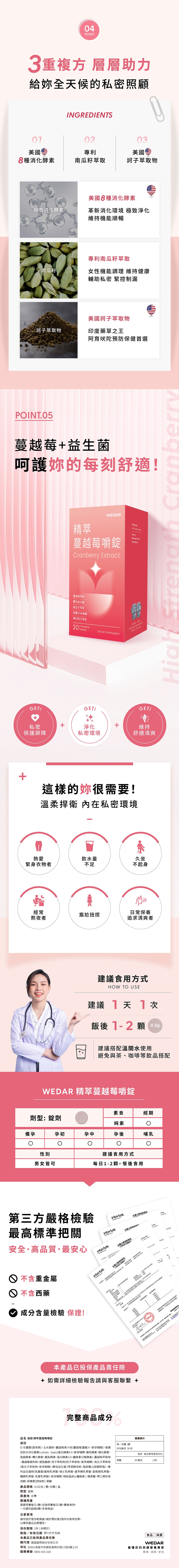 • 品名:【WEDAR薇達】精萃蔓越莓嚼錠(30顆/盒)3盒組