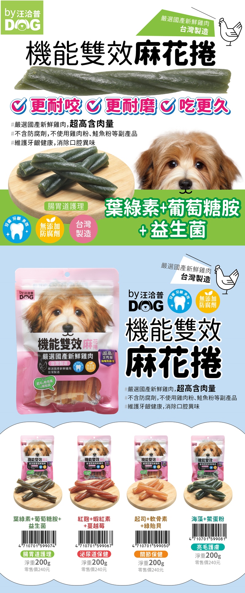 【汪洽普】麻花捲潔牙骨 葉綠素+葡萄糖胺+益生菌(200g)