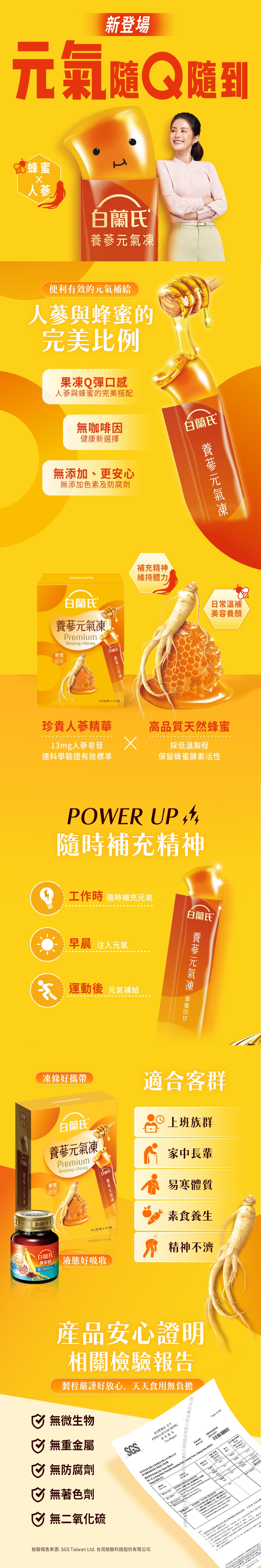 • 白蘭氏養蔘系列,首度推出人蔘與蜂蜜完美搭配的果凍!