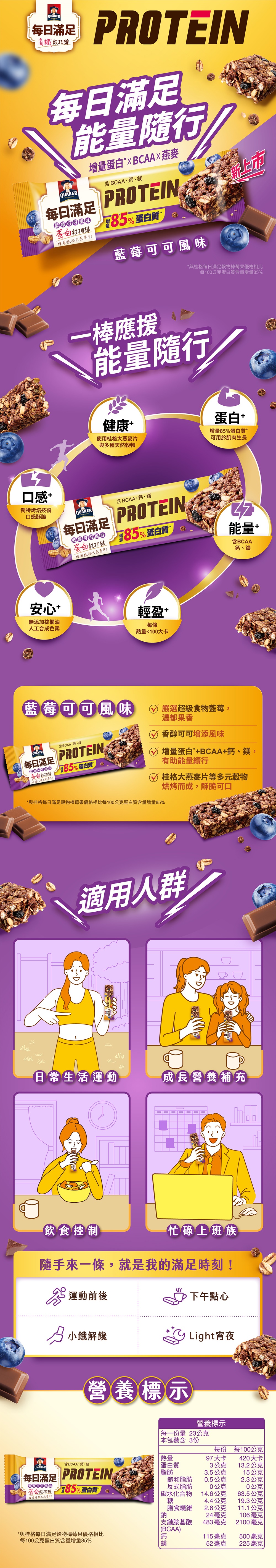 【桂格】每日滿足穀物棒(23g*3入)藍莓可可