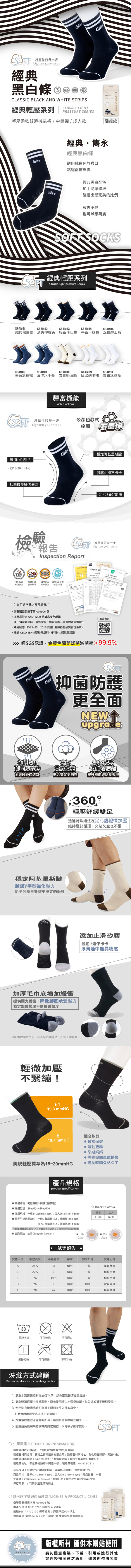 【SOFT】醫療級輕壓柔軟舒適機能中筒襪成人一般款-經典黑白條 (廠商直送)
