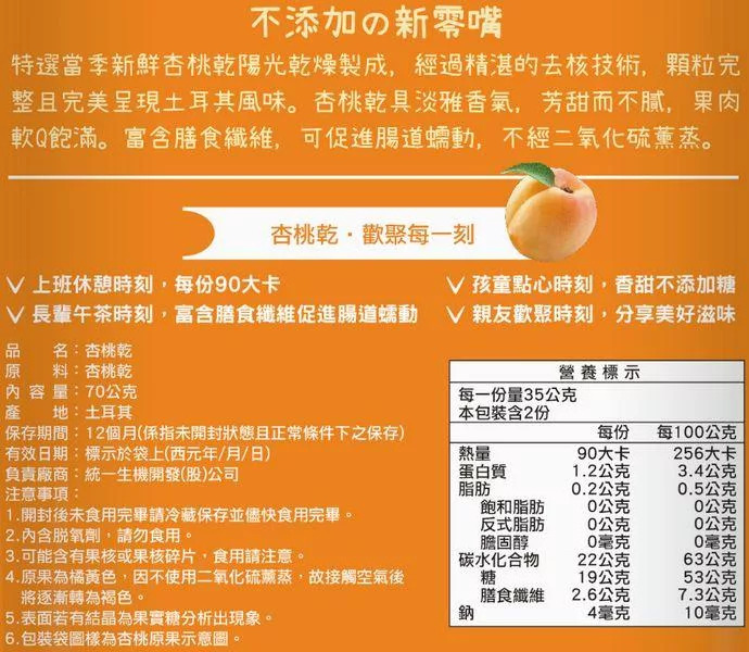 7.過敏原標示:本產品生含杏桃及其製品,不適合其過敏體質者食用。