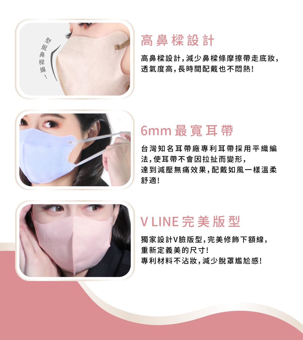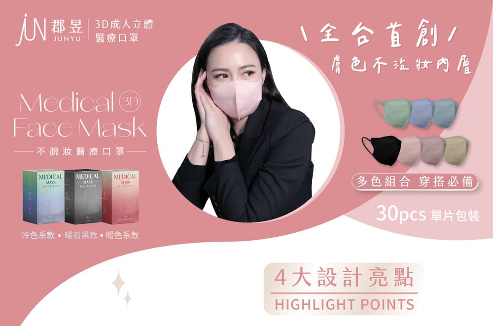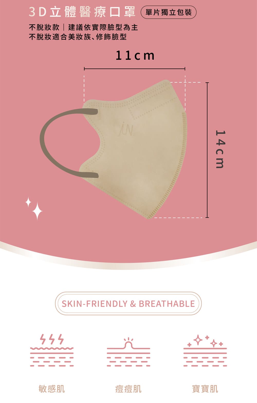 【郡昱】成人3D立體不脫妝醫療口罩(暖色系)-30入/盒-M(單片包裝)