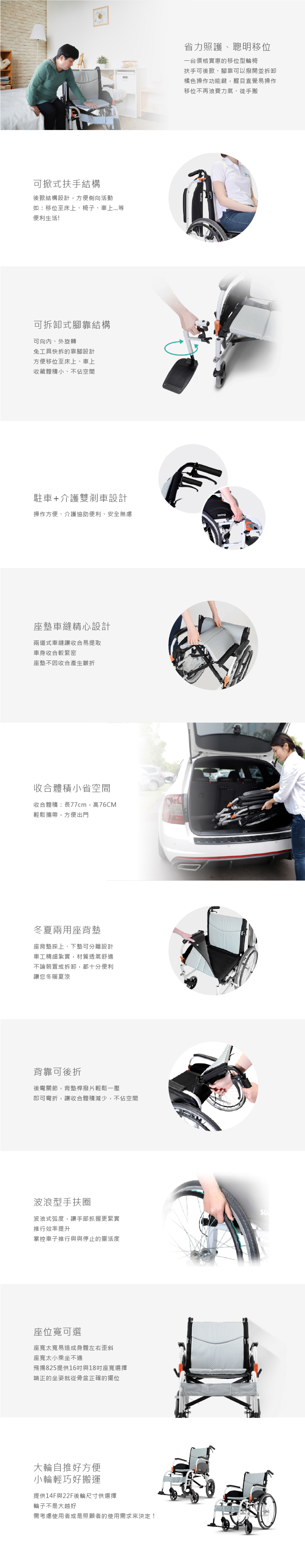 【康揚Karma】移位輪椅-飛揚825-16寬*14輪 廠商直送