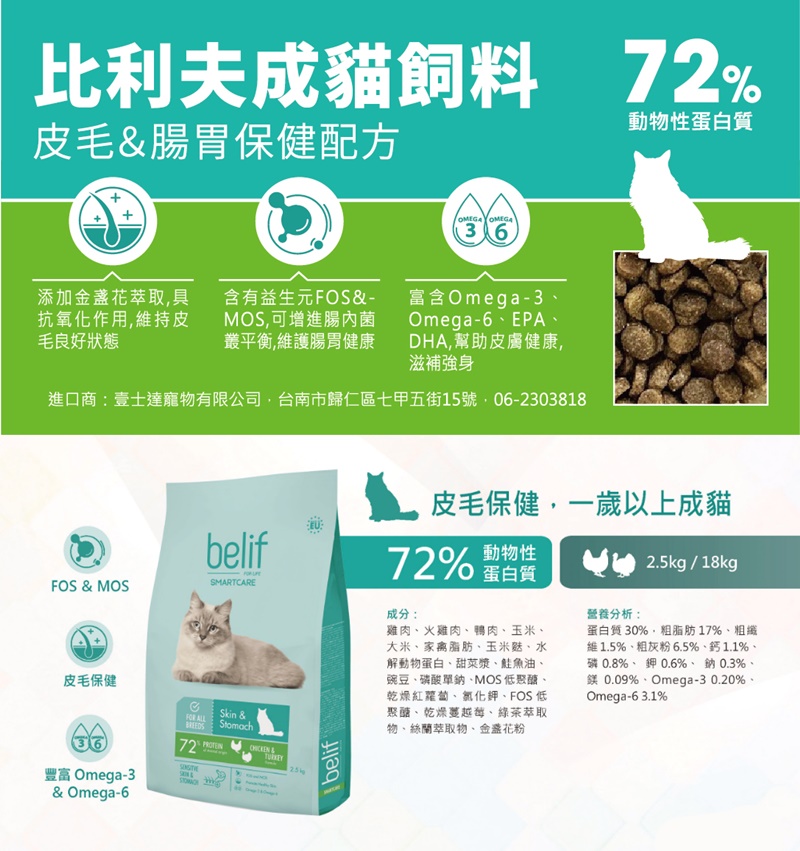 .品名:【比利夫】成貓皮膚&腸胃保健(2.5kg)