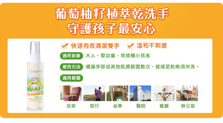 成分:水、乙醇、抗菌劑、葡萄柚籽萃取、七合一草本植萃潔淨因子