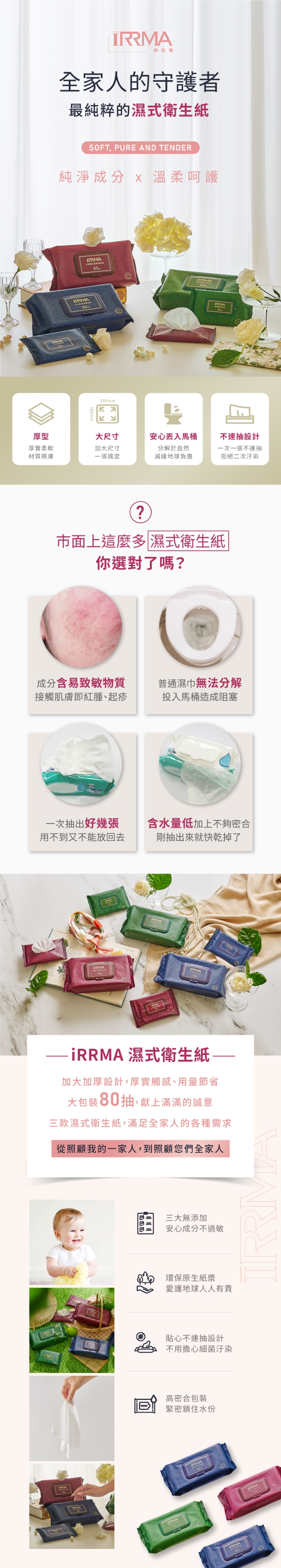 品名:【iRRMA伊兒瑪】EDI純水濕式衛生紙-80抽(12包/箱)