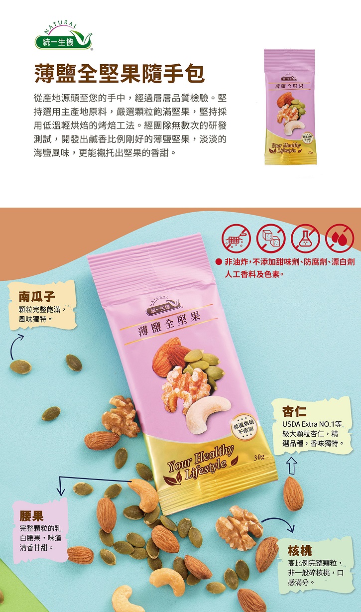 【統一生機】薄鹽全堅果隨手包(30g/包)