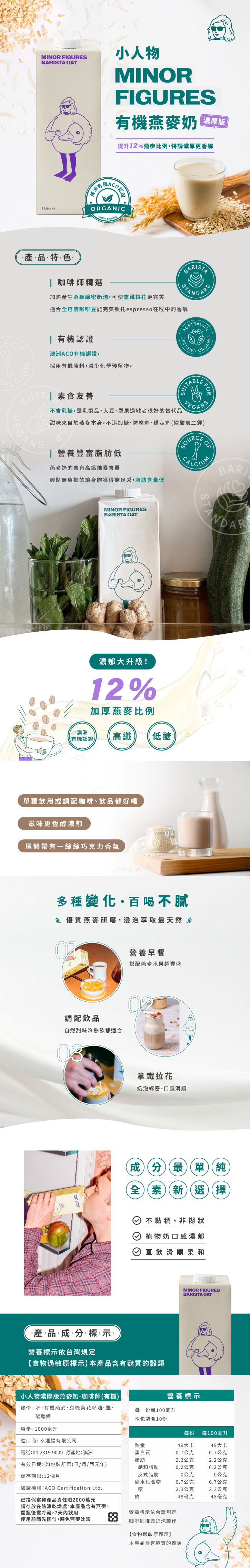 【Minor Figures小人物】濃厚版燕麥奶-咖啡師(1000mL*6瓶/箱)有機