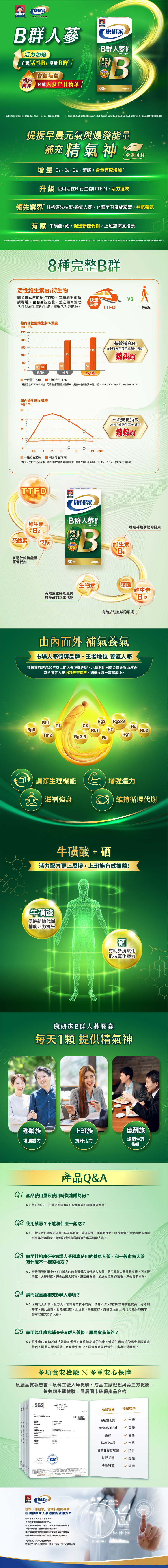 主要成分:鹽酸呋喃硫胺、維生素B6、西洋蔘萃取物(西洋蔘萃取物、麥芽糊精)、核黃素、牛磺酸、人蔘萃取物(人蔘萃取物、麥芽糊精)、菸鹼醯胺、微結晶狀α-纖維素、本多酸鈣、硬脂酸鎂、二氧化矽、維生素B12、葉酸、生物素、硒酸鈉