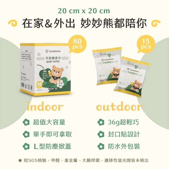 .品名:妙妙熊-平紋棉柔巾-15抽