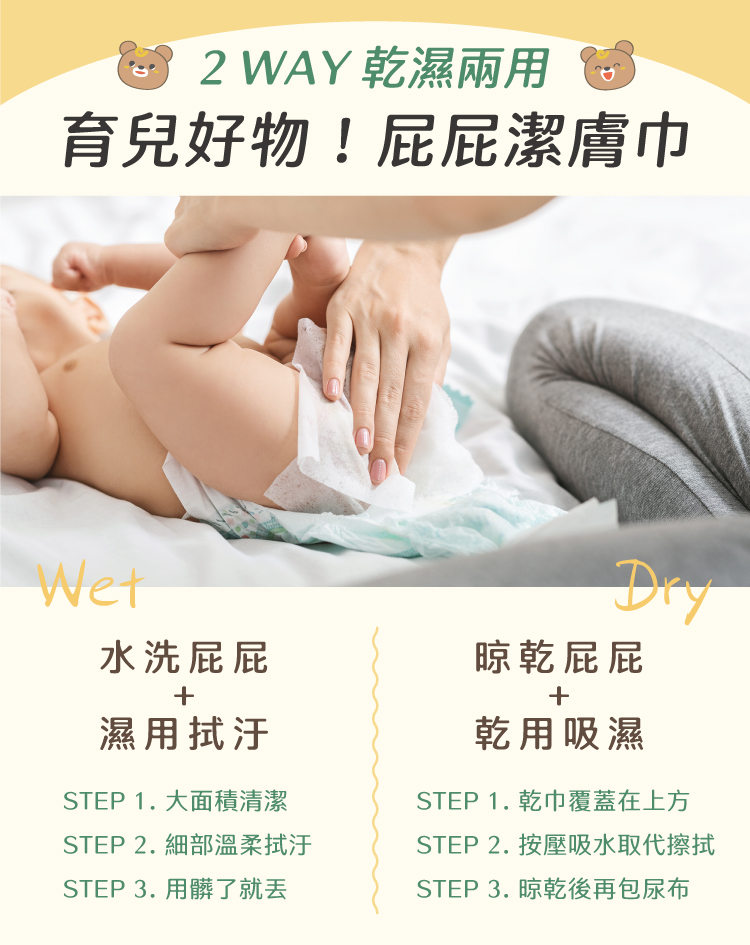 .使用方式: 1.可直接使用,也可沾開水當濕紙巾使用,擦拭效果更佳。 2.冷氣房、冬天時,取溫水沾濕使用,讓肌膚更加溫暖舒適。
