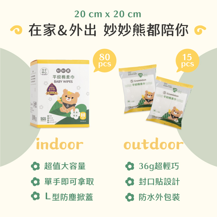 .品名:妙妙熊-平紋棉柔巾-80抽