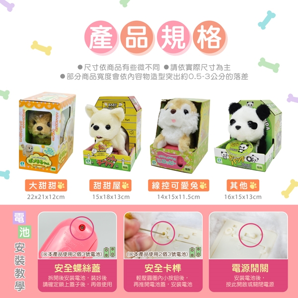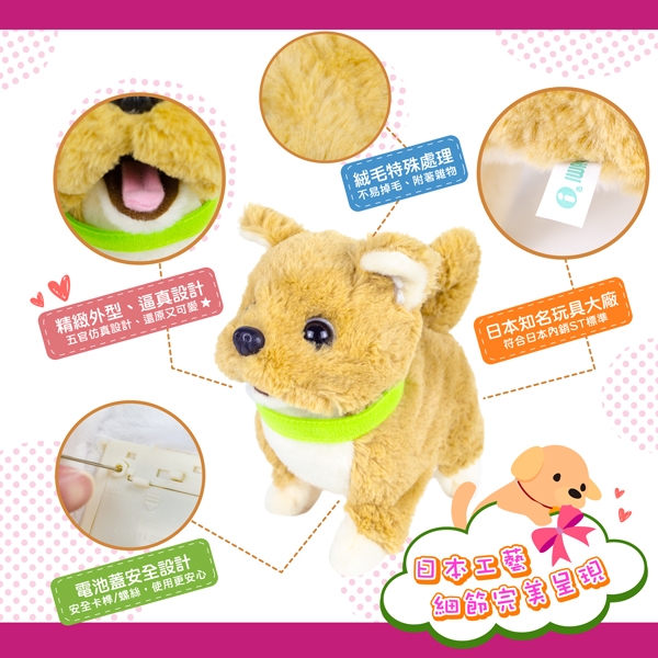 ●會前後走動、搖尾巴,還會發出可愛的叫聲唷!
