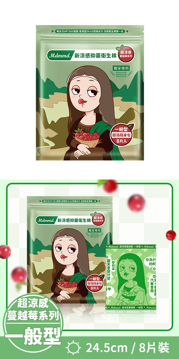 【Mdmmd】新涼感抑菌衛生棉(24.5cmX8片)蔓越莓一般型