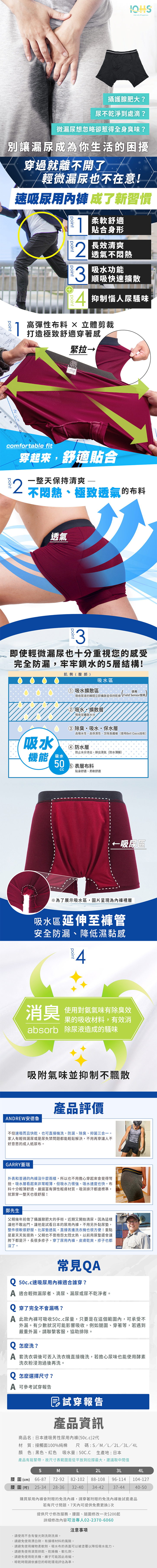 .品名:【IOHS十分幸福】日本速吸男性尿用內褲2代(50cc) S /黑色/廠商直送