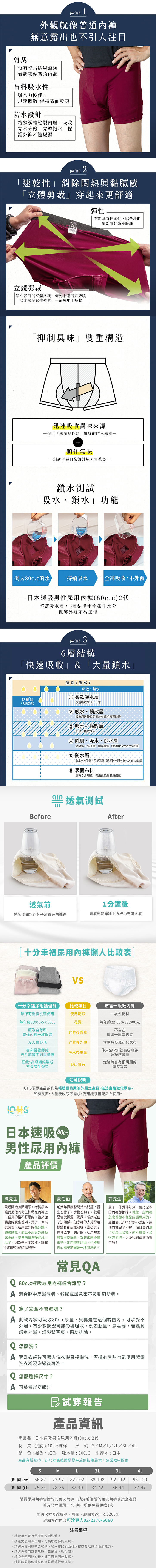 .品名:【IOHS十分幸福】日本速吸男性尿用內褲2代(80cc) L/黑色/廠商直送