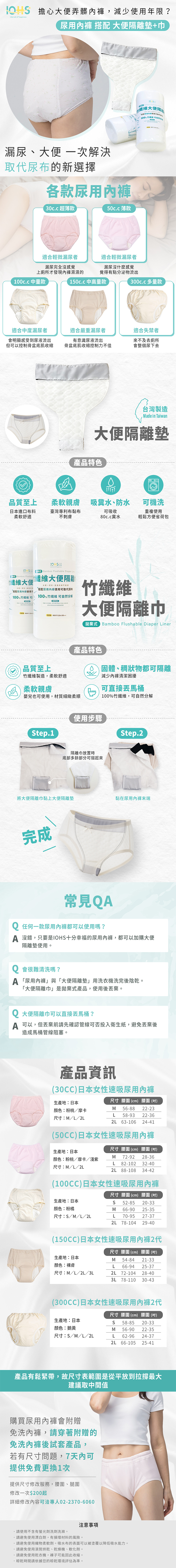 .材質:接觸面純棉(尿用內褲)、竹纖維(大便隔離巾 )