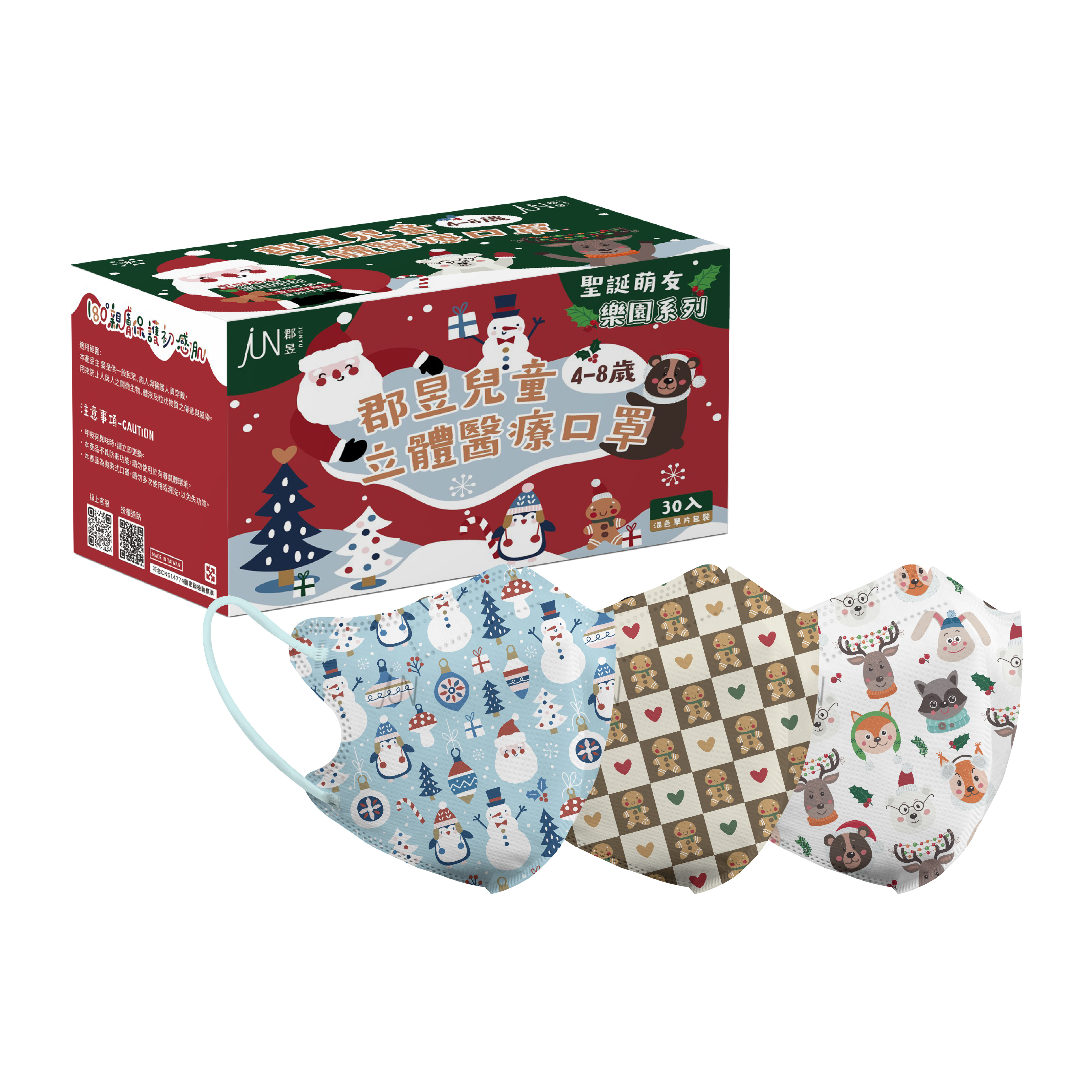 【郡昱】3D兒童立體醫療口罩(聖誕萌友樂園)-30入/盒(4-8歲)