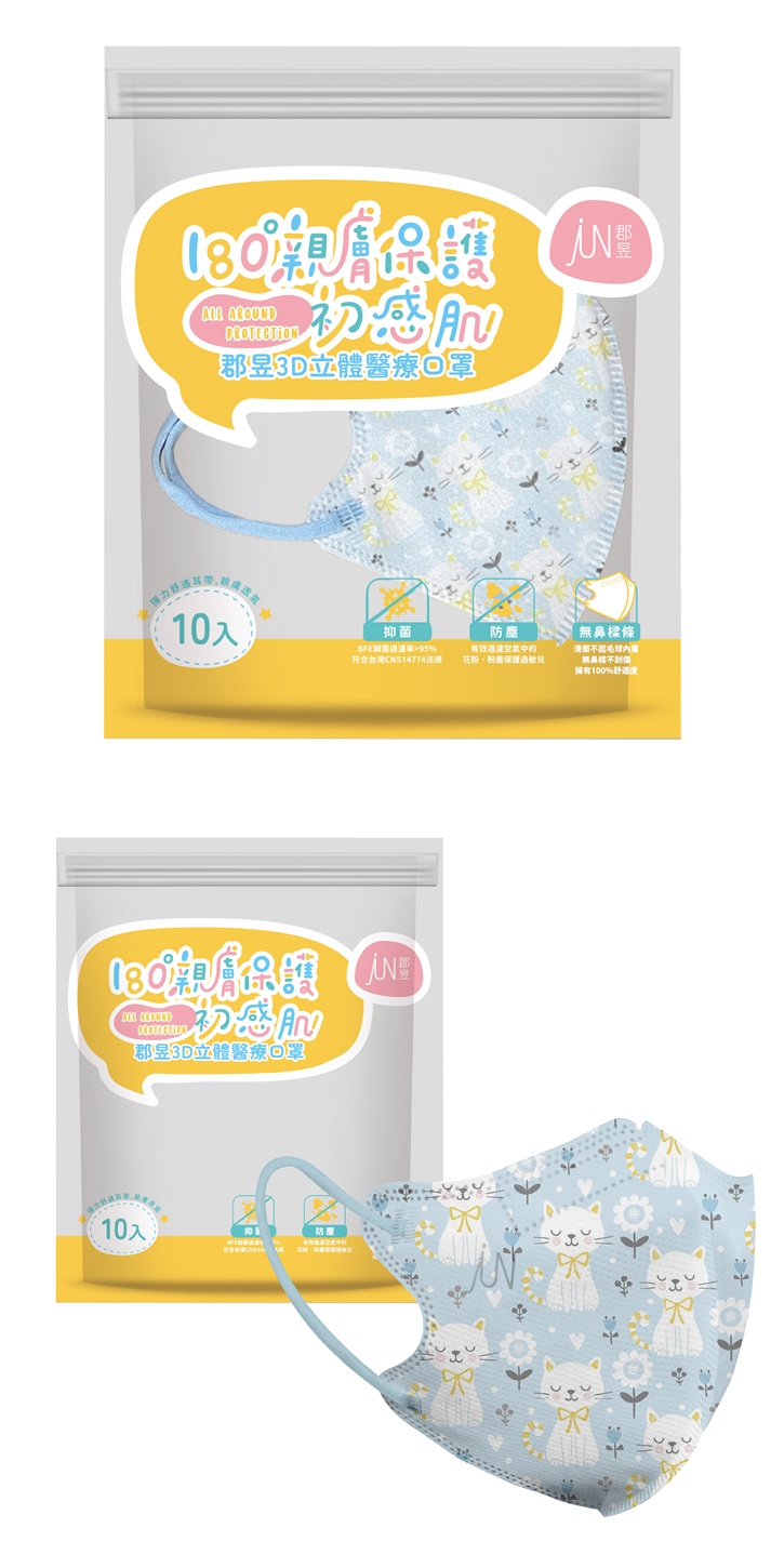 【郡昱】3D兒童立體醫療口罩(花語慵懶貓)-10入/包(4-8歲)