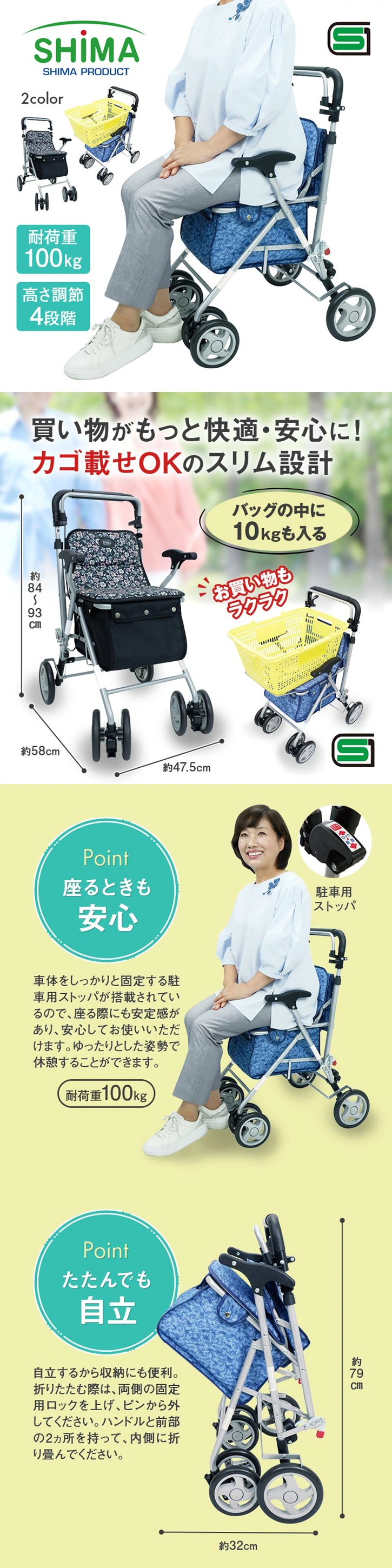 【SHIMA】Parade SC多功能散步助步車(小花BK) 廠商直送