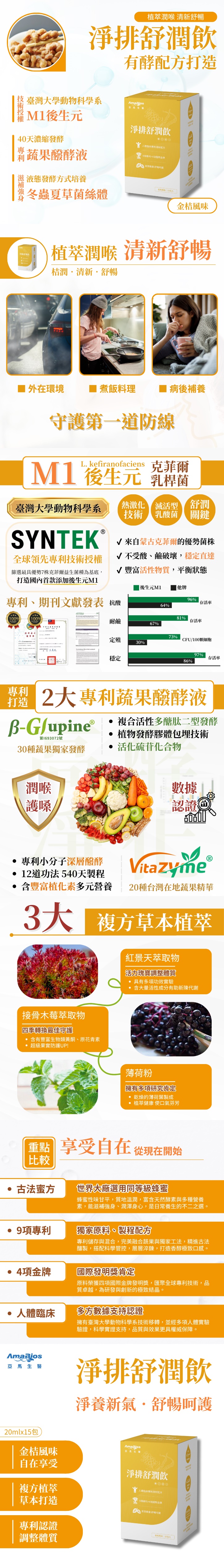 【亞馬生醫】淨排潤舒飲(20ml*15包/盒)金桔風味
