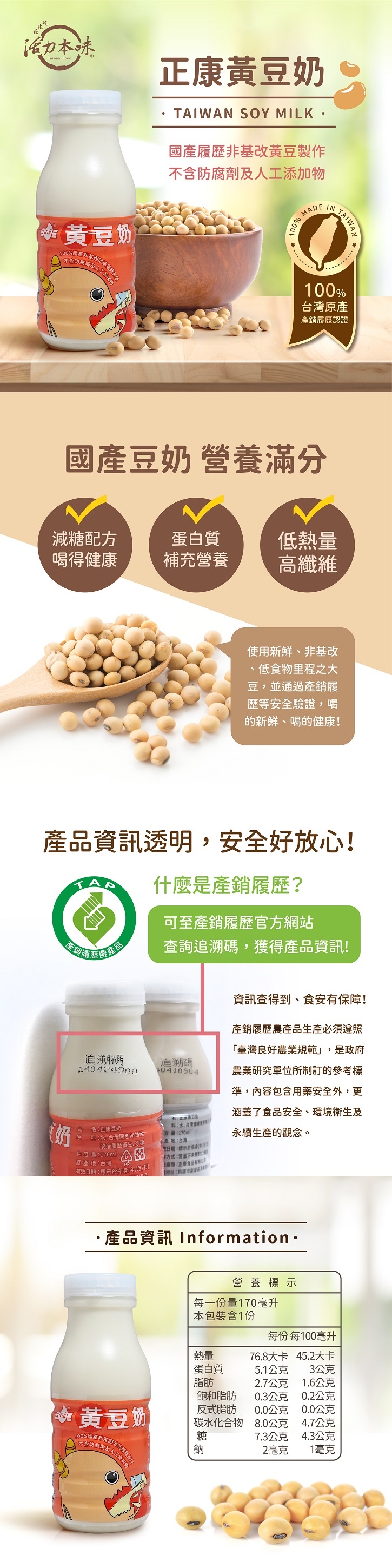 成分:水、台灣國產非基因改造履歷黃豆、砂糖
