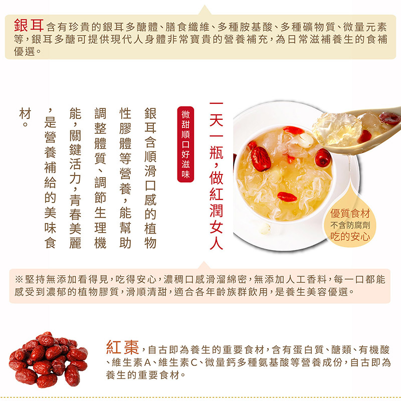• 品名:【碧而優】紅棗銀耳露