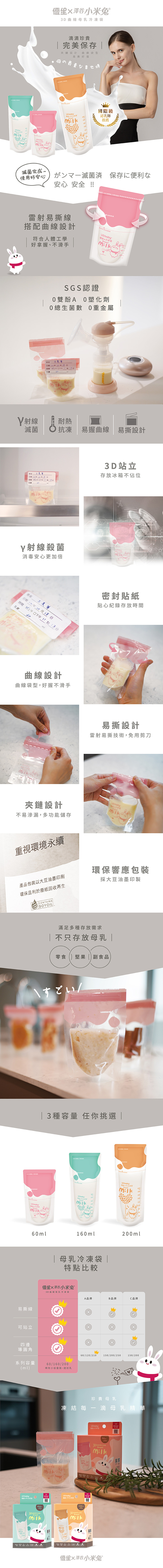 【US BABY 優生】小米兔3D曲線母乳冷凍袋 ( 160ml / 25入 )