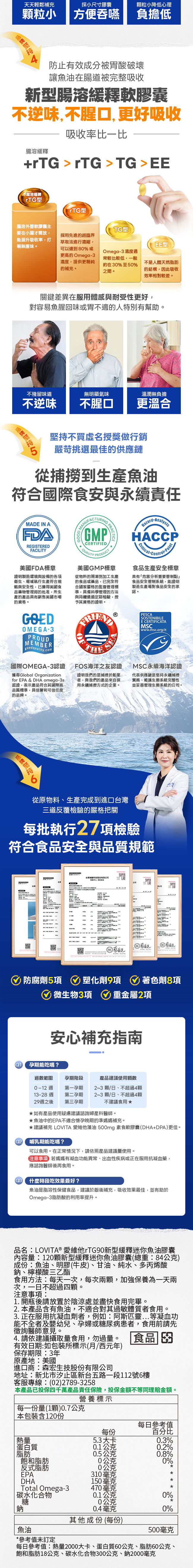 品名:【Lovita愛維他】rTG90新型緩釋迷你魚油膠囊