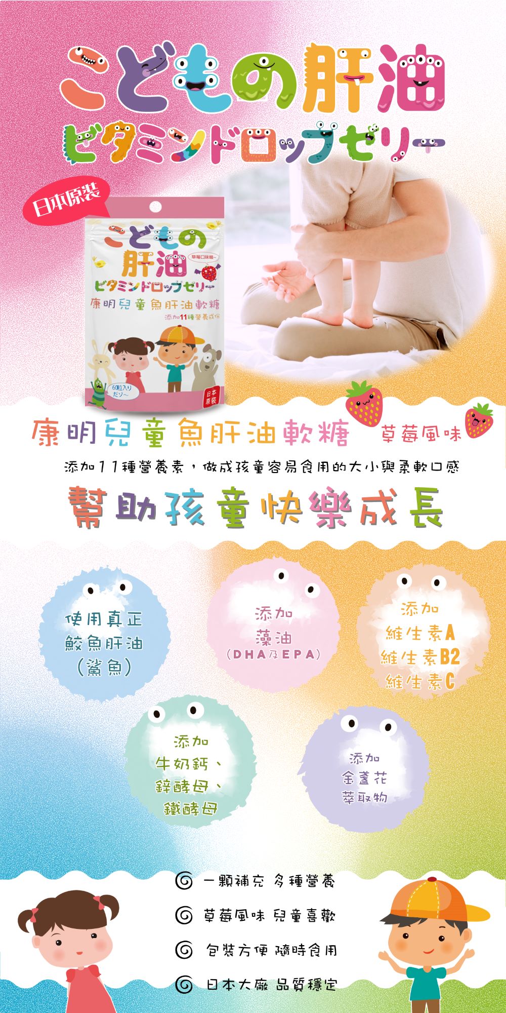 【麗磐】康明兒童魚肝油軟糖(60粒/包)草莓風味