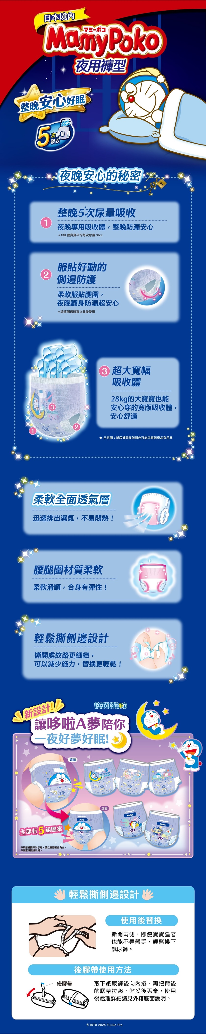品名:【滿意寶寶】哆啦A夢夜用晚安褲XXL
