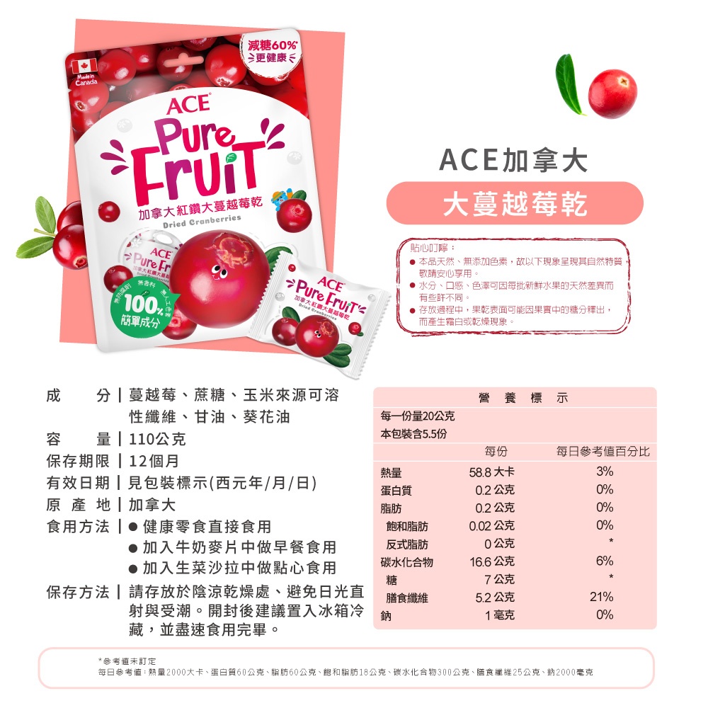 品名:【ACE】加拿大紅鑽大蔓越莓乾