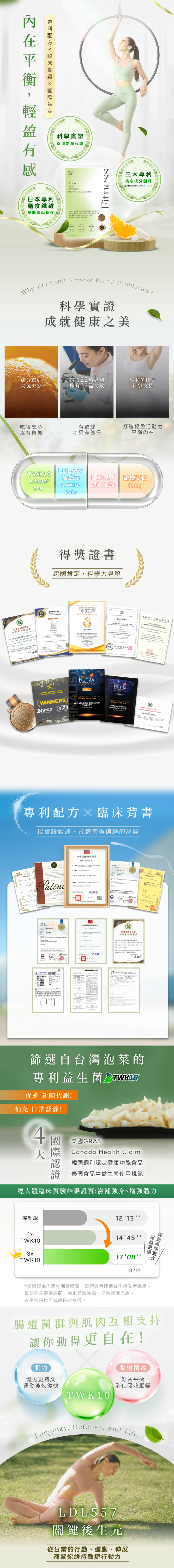 菌種組成:植物乳桿菌(Lactobacillus plantarum TWK10) 熱去活德氏乳桿菌乳亞種LDL557 (Heat-killed Lactobacillus delbrueckii subsp