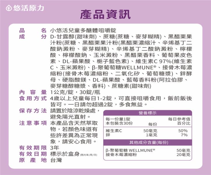品名:【悠活原力】巧虎聯名小悠活兒童多醣體咀嚼錠
