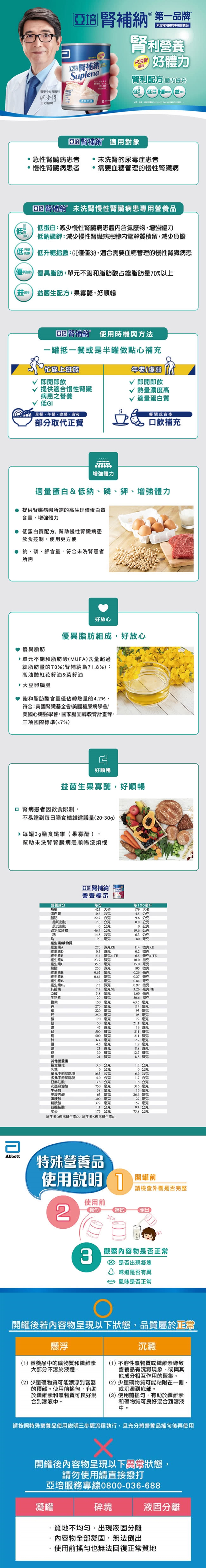 本品屬特定疾病配方食品,不適合一般人食用,須經醫師或營養師指導使用,多食無助於疾病改善。