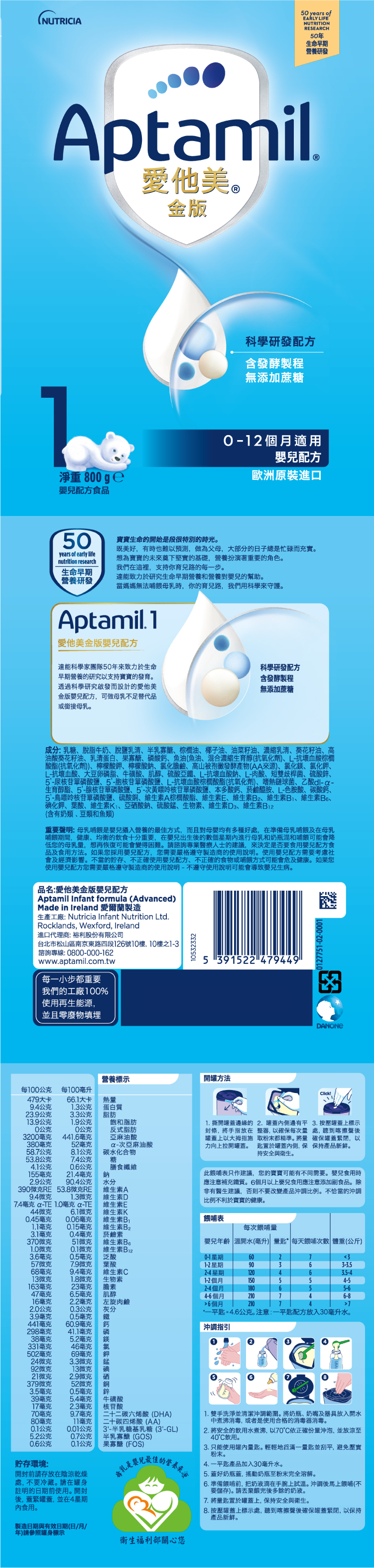.品名:【Aptamil 愛他美】金版 嬰兒配方(800gX14罐)