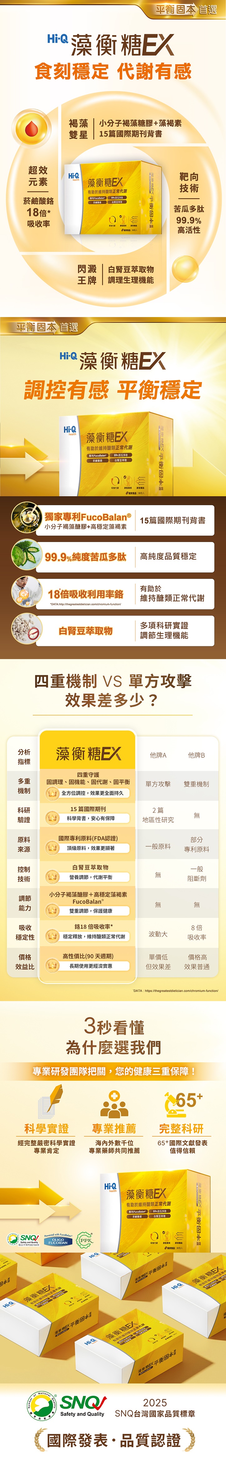成分:FucoBalan@褐藻萃取物(褐藻萃取物、玉米來源可溶性纖維)、微結晶狀α-纖維素(微結晶狀α-纖維素、麥芽糊精)、二氧化矽、硬脂酸鎂、白腎豆萃取物(白腎豆萃取物、阿拉伯膠)、苦瓜籽萃取物(含胜肽)、菸鹼酸銘複合物(菸鹼酸鉻、氯化鈉)。