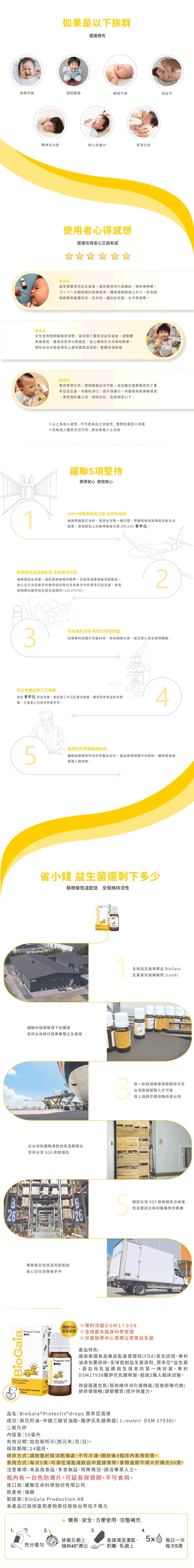 成分:葵花籽油、中鏈三酸甘油酯、羅伊氏乳酸桿菌(L. reuteri DSM 17938)、二氧化矽