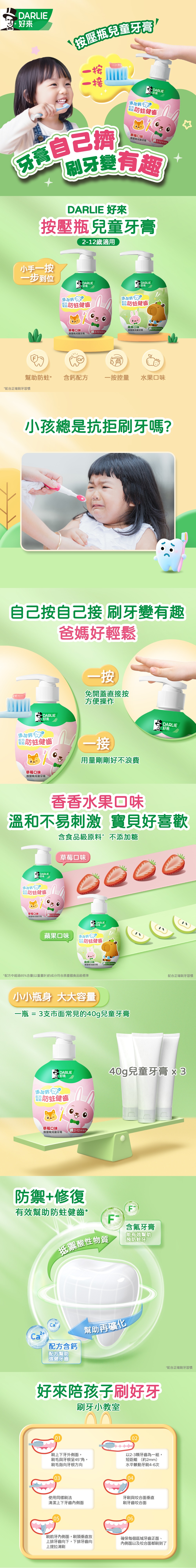【DARLIE 好來】按壓瓶兒童牙膏-草莓/蘋果120g(口味隨機)